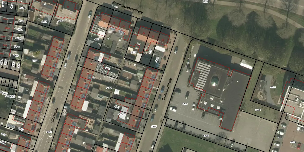 Het perceel waarop Charitasstraat 23 staat heeft een oppervlakte van 3788 m². Dit is een zeer groot perceel. De perceeloppervlakte wordt geregistreerd door het Kadaster. Gedetailleerde informatie over de maten van dit perceel kunt u vinden in het rapport Kadastrale kaart met maatvoering van Charitasstraat 23.