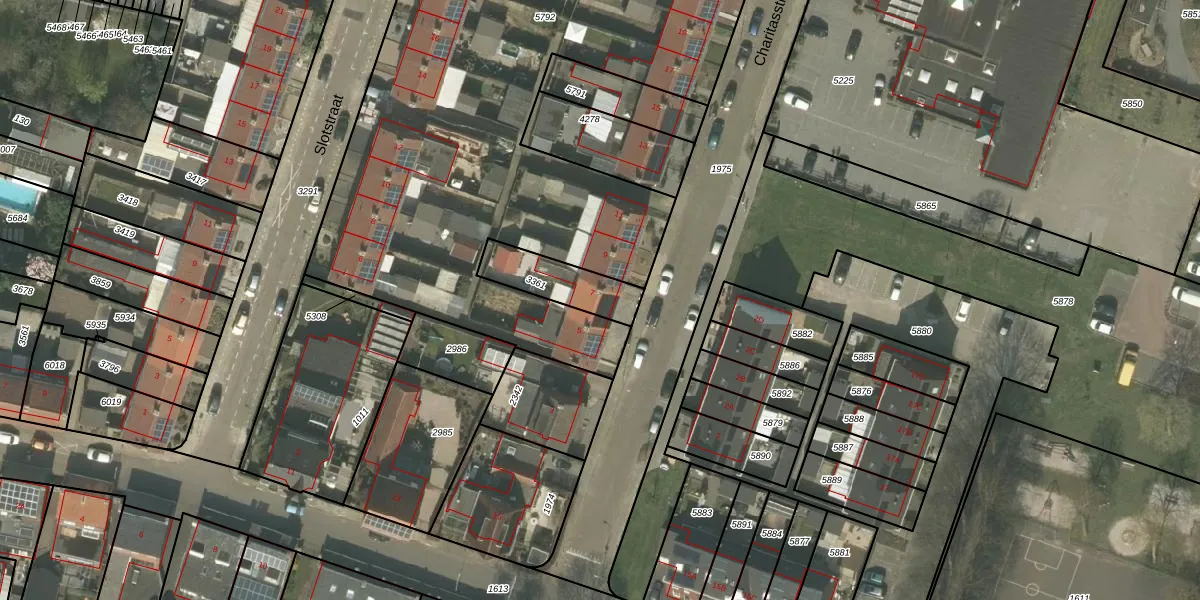 Het perceel waarop Charitasstraat 7 staat heeft een oppervlakte van 178 m². Dit is een middelgroot perceel. De perceeloppervlakte wordt geregistreerd door het Kadaster. Gedetailleerde informatie over de maten van dit perceel kunt u vinden in het rapport Kadastrale kaart met maatvoering van Charitasstraat 7.
