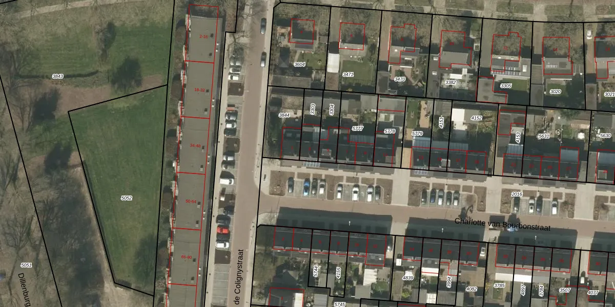 Het perceel waarop Charlotte van Bourbonstraat 3 staat heeft een oppervlakte van 141 m². Dit is een middelgroot perceel. De perceeloppervlakte wordt geregistreerd door het Kadaster. Gedetailleerde informatie over de maten van dit perceel kunt u vinden in het rapport Kadastrale kaart met maatvoering van Charlotte van Bourbonstraat 3.