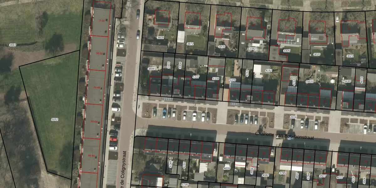 Het perceel waarop Charlotte van Bourbonstraat 7 staat heeft een oppervlakte van 281 m². Dit is een middelgroot perceel. De perceeloppervlakte wordt geregistreerd door het Kadaster. Gedetailleerde informatie over de maten van dit perceel kunt u vinden in het rapport Kadastrale kaart met maatvoering van Charlotte van Bourbonstraat 7.