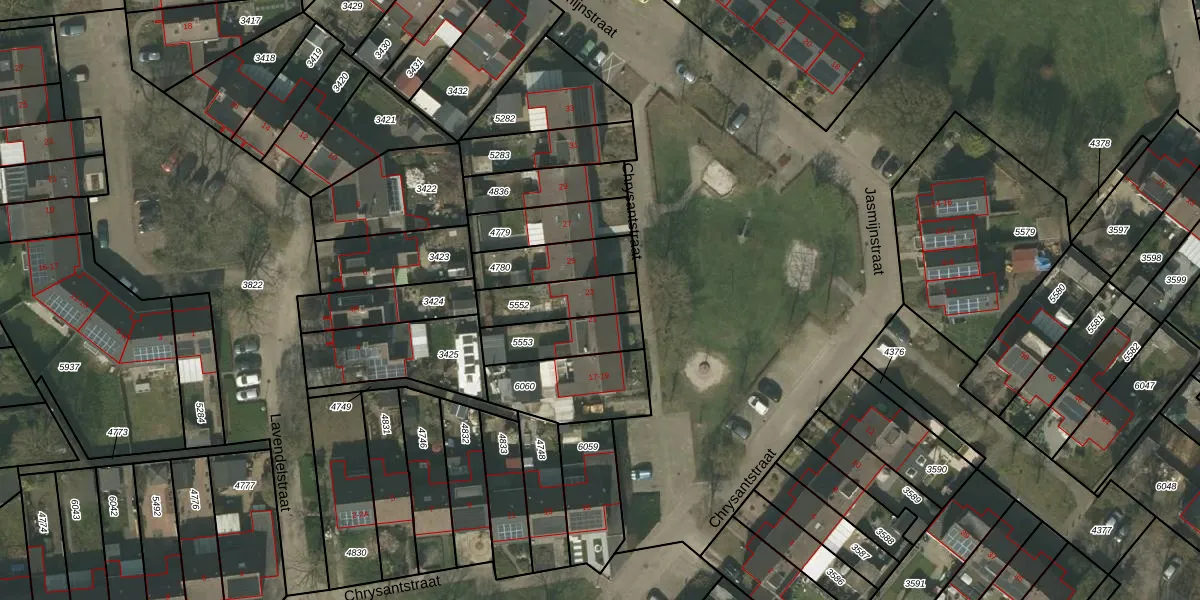 Het perceel waarop Chrysantstraat 23 staat heeft een oppervlakte van 171 m². Dit is een middelgroot perceel. De perceeloppervlakte wordt geregistreerd door het Kadaster. Gedetailleerde informatie over de maten van dit perceel kunt u vinden in het rapport Kadastrale kaart met maatvoering van Chrysantstraat 23.