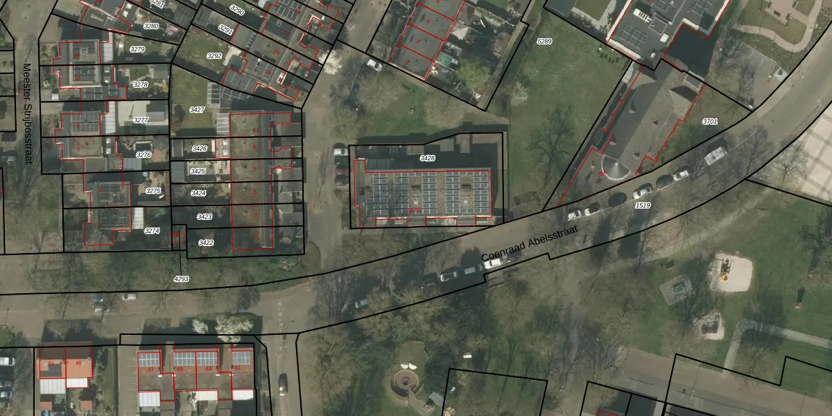 Het perceel waarop Coenraad Abelsstraat 38 staat heeft een oppervlakte van 765 m². Dit is een groot perceel. De perceeloppervlakte wordt geregistreerd door het Kadaster. Gedetailleerde informatie over de maten van dit perceel kunt u vinden in het rapport Kadastrale kaart met maatvoering van Coenraad Abelsstraat 38.