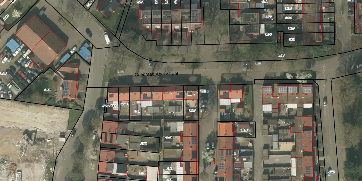 Het perceel waarop Coenraad Abelsstraat 55 staat heeft een oppervlakte van 1479 m². Dit is een zeer groot perceel. De perceeloppervlakte wordt geregistreerd door het Kadaster. Gedetailleerde informatie over de maten van dit perceel kunt u vinden in het rapport Kadastrale kaart met maatvoering van Coenraad Abelsstraat 55.