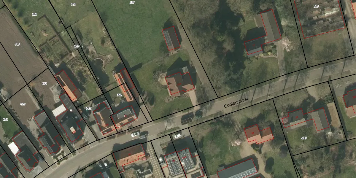 Het perceel waarop Coolenstraat 15-A staat heeft een oppervlakte van 5085 m². Dit is een zeer groot perceel. De perceeloppervlakte wordt geregistreerd door het Kadaster. Gedetailleerde informatie over de maten van dit perceel kunt u vinden in het rapport Kadastrale kaart met maatvoering van Coolenstraat 15-A.