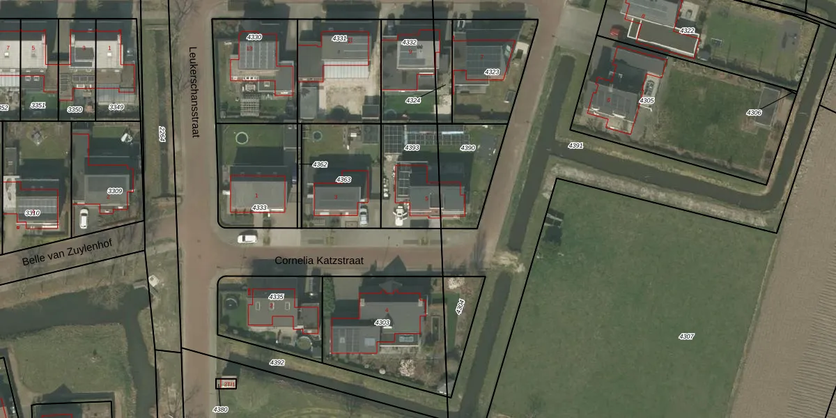 Het perceel waarop Cornelia Katzstraat 5 staat heeft een oppervlakte van 348 m². Dit is een groot perceel. De perceeloppervlakte wordt geregistreerd door het Kadaster. Gedetailleerde informatie over de maten van dit perceel kunt u vinden in het rapport Kadastrale kaart met maatvoering van Cornelia Katzstraat 5.