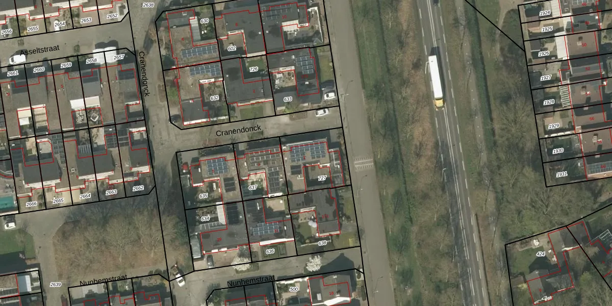 Gebruik de zoekbalk of klik op een perceel voor informatie over de adressen binnen dit perceel.