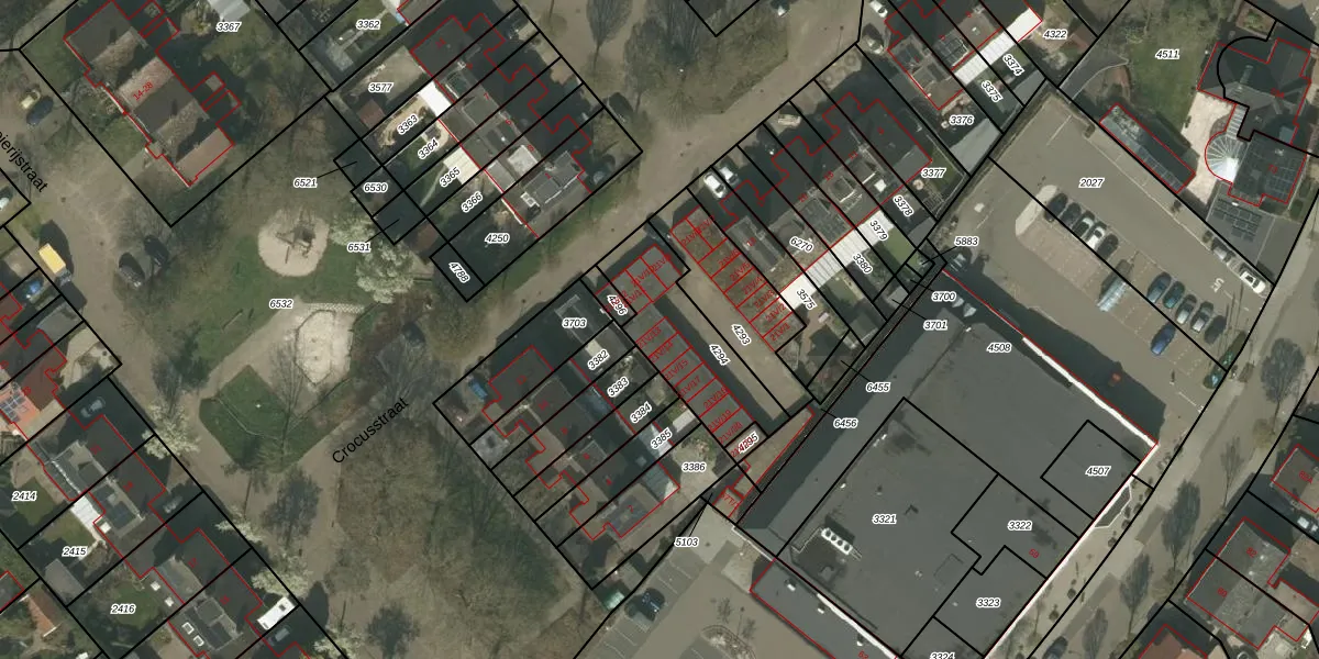 Het perceel waarop Crocusstraat 21-V-13 staat heeft een oppervlakte van 372 m². Dit is een groot perceel. De perceeloppervlakte wordt geregistreerd door het Kadaster. Gedetailleerde informatie over de maten van dit perceel kunt u vinden in het rapport Kadastrale kaart met maatvoering van Crocusstraat 21-V-13.