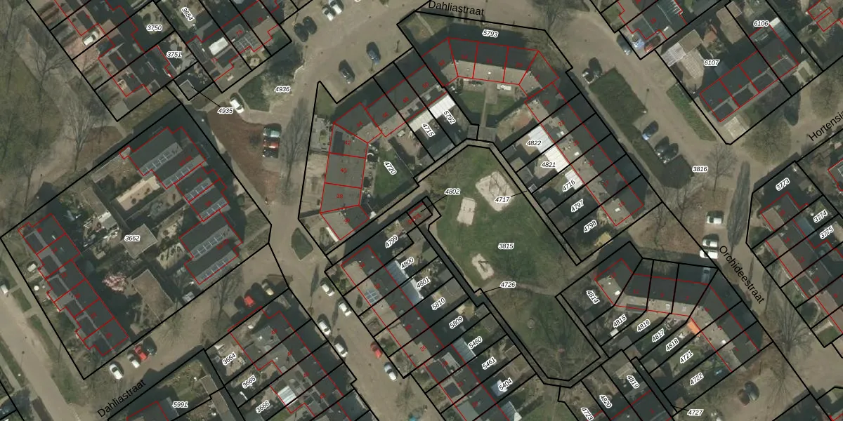 Het perceel waarop Dahliastraat 34-T-1 staat heeft een oppervlakte van 20 m². Dit is een klein perceel. De perceeloppervlakte wordt geregistreerd door het Kadaster. Gedetailleerde informatie over de maten van dit perceel kunt u vinden in het rapport Kadastrale kaart met maatvoering van Dahliastraat 34-T-1.