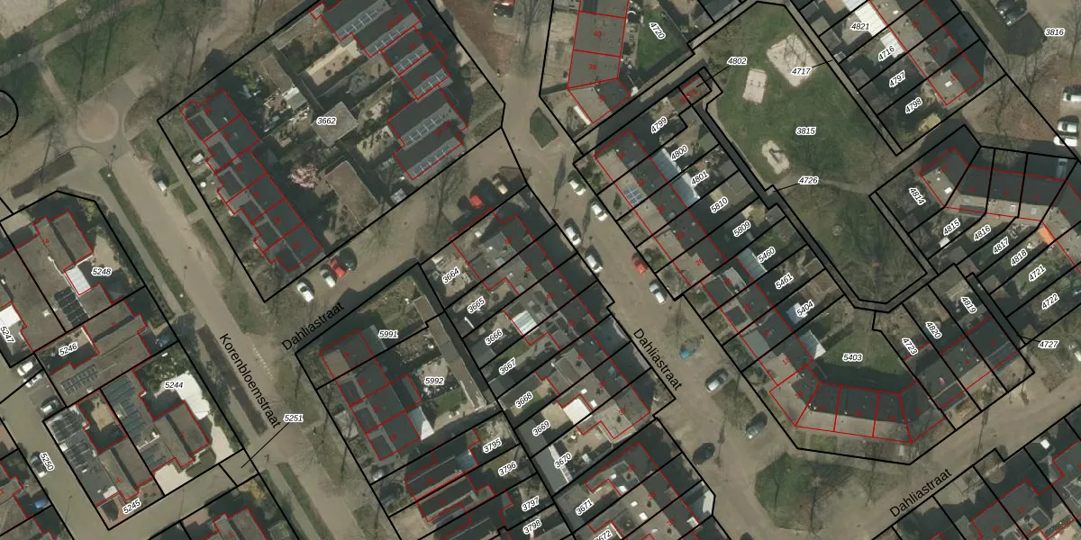 Het perceel waarop Dahliastraat 47 staat heeft een oppervlakte van 168 m². Dit is een middelgroot perceel. De perceeloppervlakte wordt geregistreerd door het Kadaster. Gedetailleerde informatie over de maten van dit perceel kunt u vinden in het rapport Kadastrale kaart met maatvoering van Dahliastraat 47.