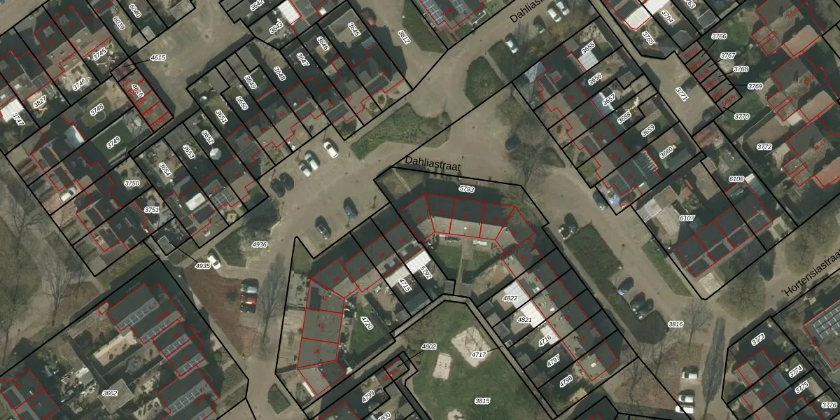 Het perceel waarop Dahliastraat 52 staat heeft een oppervlakte van 807 m². Dit is een groot perceel. De perceeloppervlakte wordt geregistreerd door het Kadaster. Gedetailleerde informatie over de maten van dit perceel kunt u vinden in het rapport Kadastrale kaart met maatvoering van Dahliastraat 52.