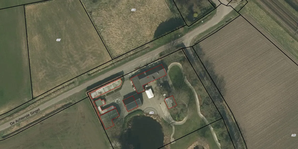Het perceel waarop De Achterste Singel 11 staat heeft een oppervlakte van 3932 m². Dit is een zeer groot perceel. De perceeloppervlakte wordt geregistreerd door het Kadaster. Gedetailleerde informatie over de maten van dit perceel kunt u vinden in het rapport Kadastrale kaart met maatvoering van De Achterste Singel 11.