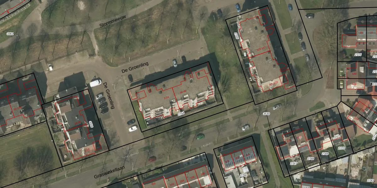De Groenling 46 is gelegen op kadastraal perceel WEE01F2754. Deze kadastrale aanduiding is uniek en wordt gebruikt door het Kadaster om eigendomsrechten en andere zakelijke rechten vast te leggen. Het perceel maakt onderdeel uit van de kadastrale gemeente Weert.
