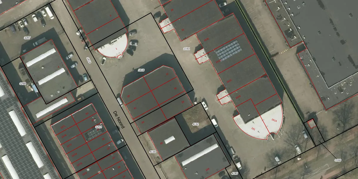 Het perceel waarop De Noord 35 staat heeft een oppervlakte van 1950 m². Dit is een zeer groot perceel. De perceeloppervlakte wordt geregistreerd door het Kadaster. Gedetailleerde informatie over de maten van dit perceel kunt u vinden in het rapport Kadastrale kaart met maatvoering van De Noord 35.