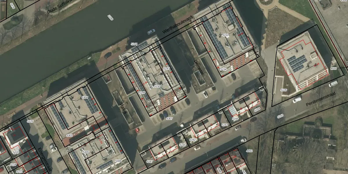 Het perceel waarop Demeter 45 staat heeft een oppervlakte van 166 m². Dit is een middelgroot perceel. De perceeloppervlakte wordt geregistreerd door het Kadaster. Gedetailleerde informatie over de maten van dit perceel kunt u vinden in het rapport Kadastrale kaart met maatvoering van Demeter 45.