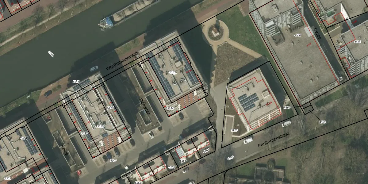 Het perceel waarop Demeter 77 staat heeft een oppervlakte van 538 m². Dit is een groot perceel. De perceeloppervlakte wordt geregistreerd door het Kadaster. Gedetailleerde informatie over de maten van dit perceel kunt u vinden in het rapport Kadastrale kaart met maatvoering van Demeter 77.