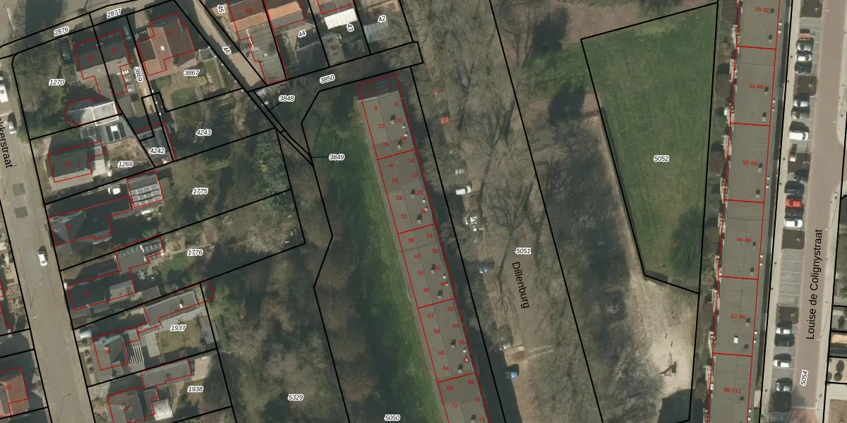 Het perceel waarop Dillenburg 30 staat heeft een oppervlakte van 4435 m². Dit is een zeer groot perceel. De perceeloppervlakte wordt geregistreerd door het Kadaster. Gedetailleerde informatie over de maten van dit perceel kunt u vinden in het rapport Kadastrale kaart met maatvoering van Dillenburg 30.