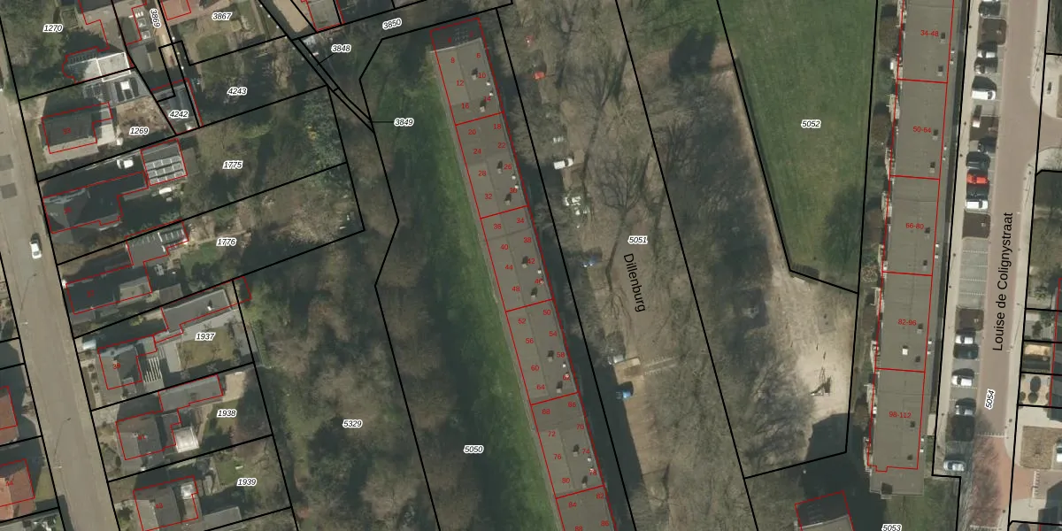 Het perceel waarop Dillenburg 42 staat heeft een oppervlakte van 4435 m². Dit is een zeer groot perceel. De perceeloppervlakte wordt geregistreerd door het Kadaster. Gedetailleerde informatie over de maten van dit perceel kunt u vinden in het rapport Kadastrale kaart met maatvoering van Dillenburg 42.