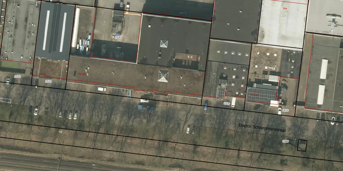 Het perceel waarop Doctor Schaepmanstraat 45-B-28 staat heeft een oppervlakte van 4010 m². Dit is een zeer groot perceel. De perceeloppervlakte wordt geregistreerd door het Kadaster. Gedetailleerde informatie over de maten van dit perceel kunt u vinden in het rapport Kadastrale kaart met maatvoering van Doctor Schaepmanstraat 45-B-28.
