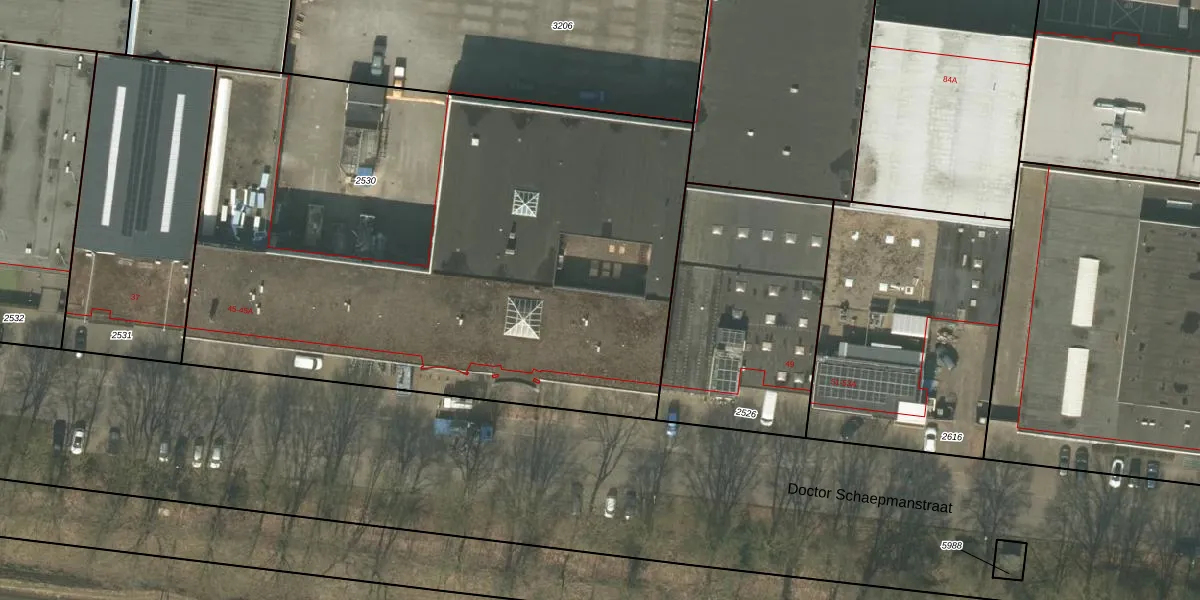 Het perceel waarop Doctor Schaepmanstraat 45-B-33 staat heeft een oppervlakte van 4010 m². Dit is een zeer groot perceel. De perceeloppervlakte wordt geregistreerd door het Kadaster. Gedetailleerde informatie over de maten van dit perceel kunt u vinden in het rapport Kadastrale kaart met maatvoering van Doctor Schaepmanstraat 45-B-33.