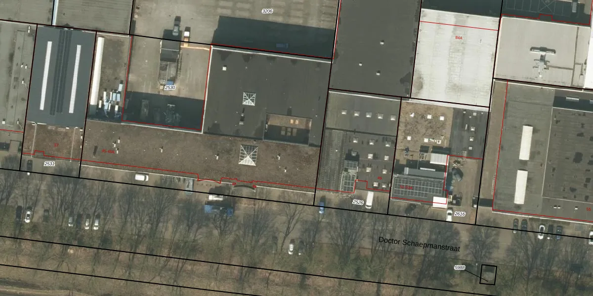 Het perceel waarop Doctor Schaepmanstraat 45-B-35 staat heeft een oppervlakte van 4010 m². Dit is een zeer groot perceel. De perceeloppervlakte wordt geregistreerd door het Kadaster. Gedetailleerde informatie over de maten van dit perceel kunt u vinden in het rapport Kadastrale kaart met maatvoering van Doctor Schaepmanstraat 45-B-35.