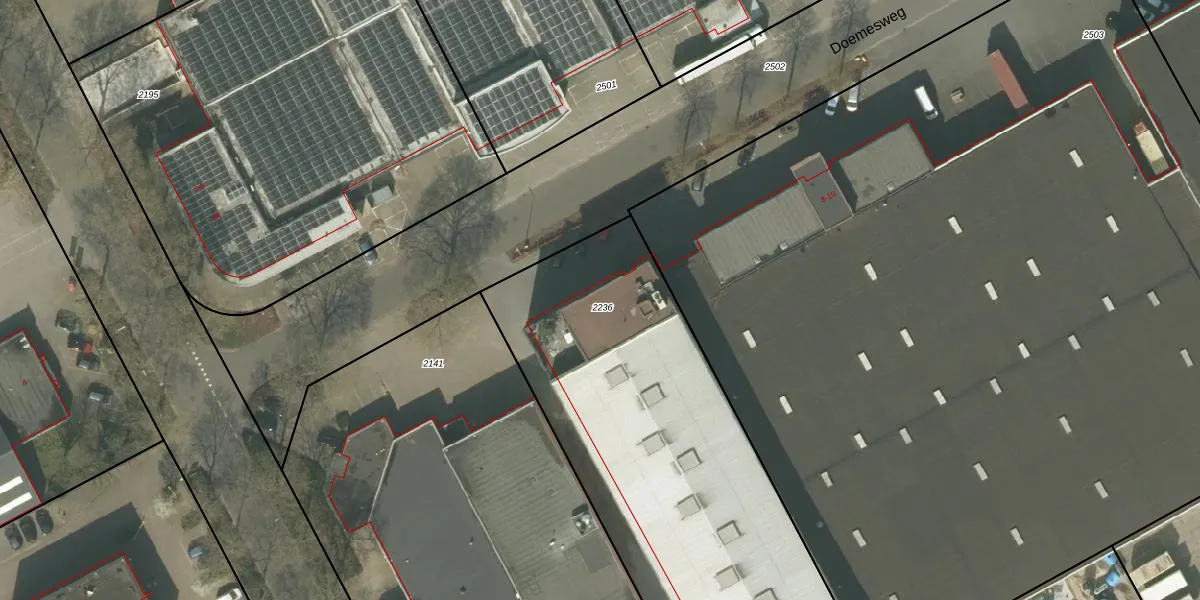 Het perceel waarop Doemesweg 8 staat heeft een oppervlakte van 2490 m². Dit is een zeer groot perceel. De perceeloppervlakte wordt geregistreerd door het Kadaster. Gedetailleerde informatie over de maten van dit perceel kunt u vinden in het rapport Kadastrale kaart met maatvoering van Doemesweg 8.