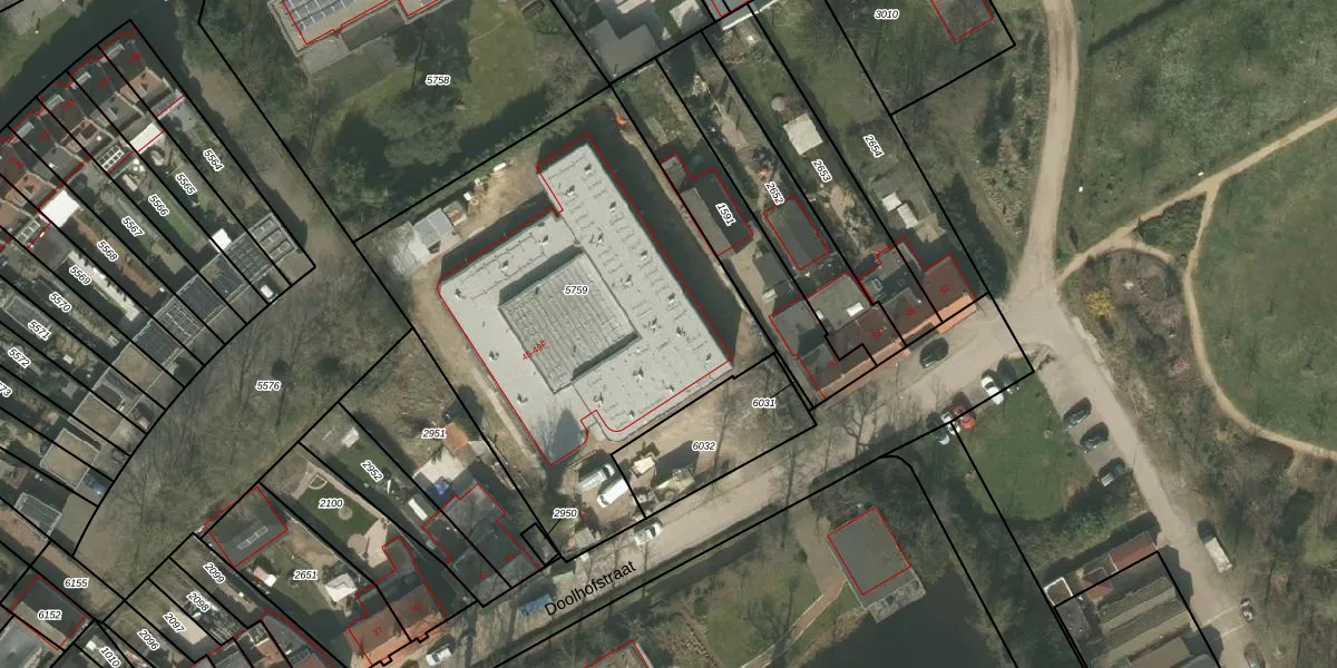 Het perceel waarop Doolhofstraat 47-J staat heeft een oppervlakte van 2205 m². Dit is een zeer groot perceel. De perceeloppervlakte wordt geregistreerd door het Kadaster. Gedetailleerde informatie over de maten van dit perceel kunt u vinden in het rapport Kadastrale kaart met maatvoering van Doolhofstraat 47-J.