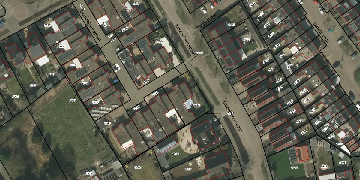 Het perceel waarop Dotterbloemstraat 1 staat heeft een oppervlakte van 428 m². Dit is een groot perceel. De perceeloppervlakte wordt geregistreerd door het Kadaster. Gedetailleerde informatie over de maten van dit perceel kunt u vinden in het rapport Kadastrale kaart met maatvoering van Dotterbloemstraat 1.
