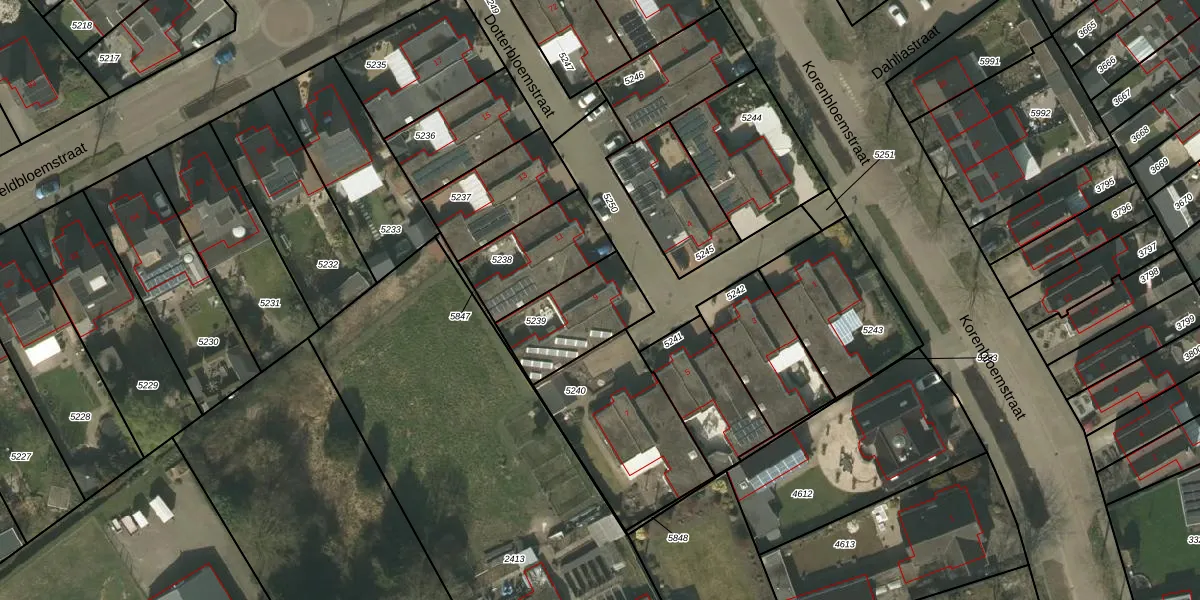 Dotterbloemstraat 9 is gelegen op kadastraal perceel WEE01N5239. Deze kadastrale aanduiding is uniek en wordt gebruikt door het Kadaster om eigendomsrechten en andere zakelijke rechten vast te leggen. Het perceel maakt onderdeel uit van de kadastrale gemeente Weert.