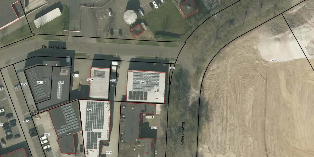 Het perceel waarop Drukkerijstraat 1 staat heeft een oppervlakte van 885 m². Dit is een groot perceel. De perceeloppervlakte wordt geregistreerd door het Kadaster. Gedetailleerde informatie over de maten van dit perceel kunt u vinden in het rapport Kadastrale kaart met maatvoering van Drukkerijstraat 1.