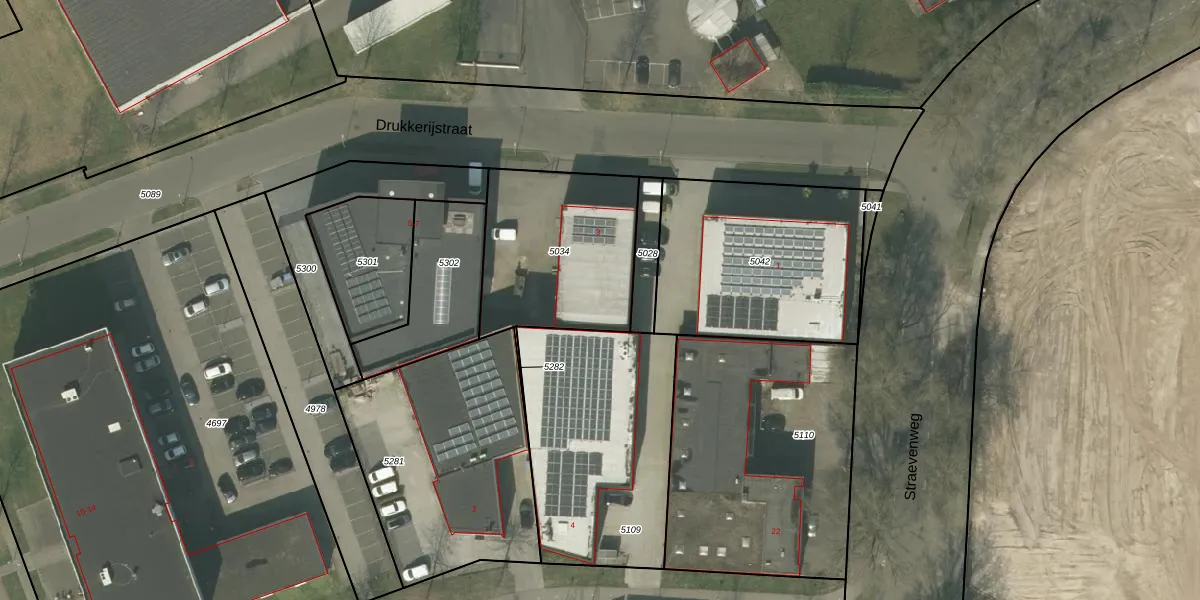 Het perceel waarop Drukkerijstraat 3 staat heeft een oppervlakte van 660 m². Dit is een groot perceel. De perceeloppervlakte wordt geregistreerd door het Kadaster. Gedetailleerde informatie over de maten van dit perceel kunt u vinden in het rapport Kadastrale kaart met maatvoering van Drukkerijstraat 3.