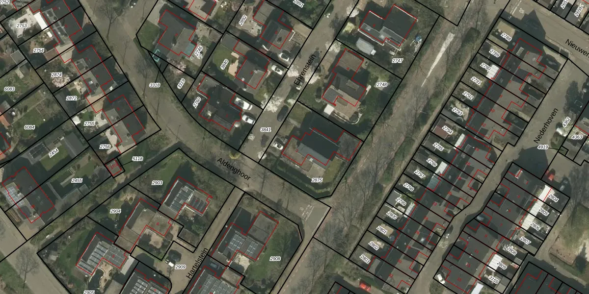 Gebruik de zoekbalk of klik op een perceel voor informatie over de adressen binnen dit perceel.