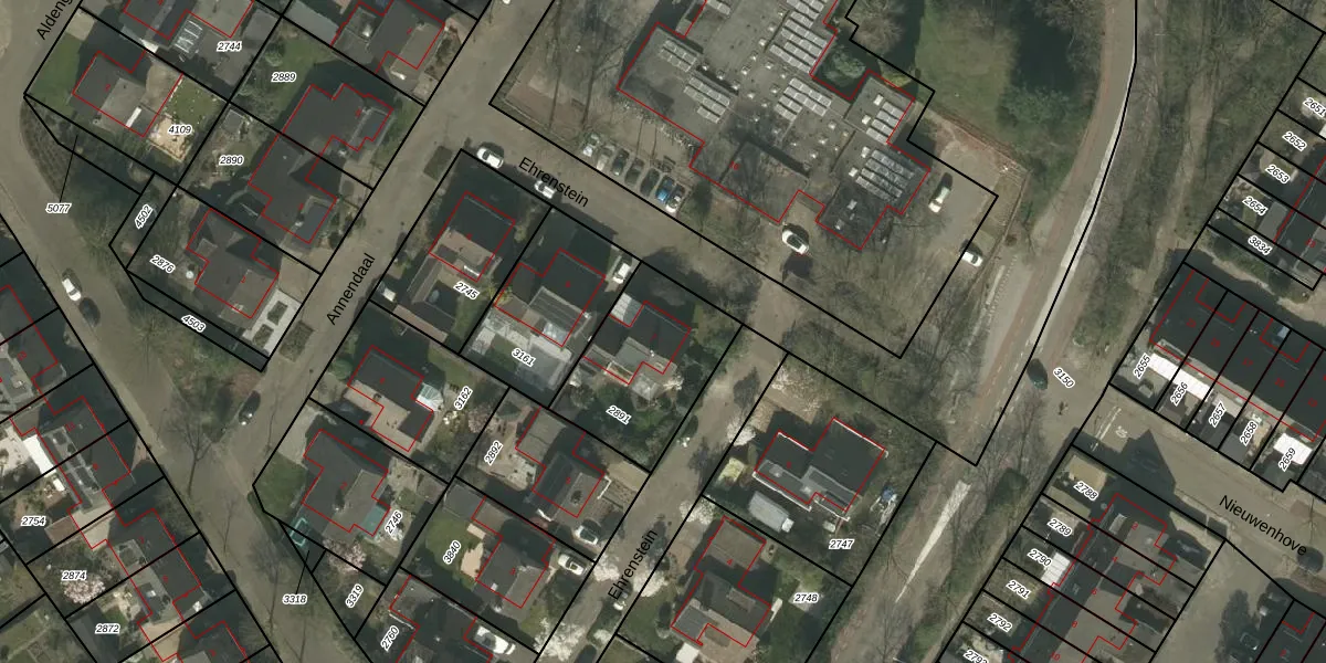 Het perceel waarop Ehrenstein 7 staat heeft een oppervlakte van 486 m². Dit is een groot perceel. De perceeloppervlakte wordt geregistreerd door het Kadaster. Gedetailleerde informatie over de maten van dit perceel kunt u vinden in het rapport Kadastrale kaart met maatvoering van Ehrenstein 7.