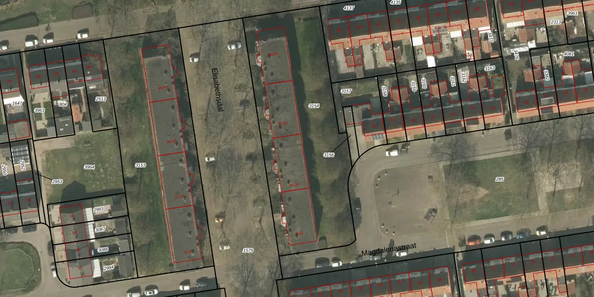Het perceel waarop Elisabethsdal 26 staat heeft een oppervlakte van 2151 m². Dit is een zeer groot perceel. De perceeloppervlakte wordt geregistreerd door het Kadaster. Gedetailleerde informatie over de maten van dit perceel kunt u vinden in het rapport Kadastrale kaart met maatvoering van Elisabethsdal 26.
