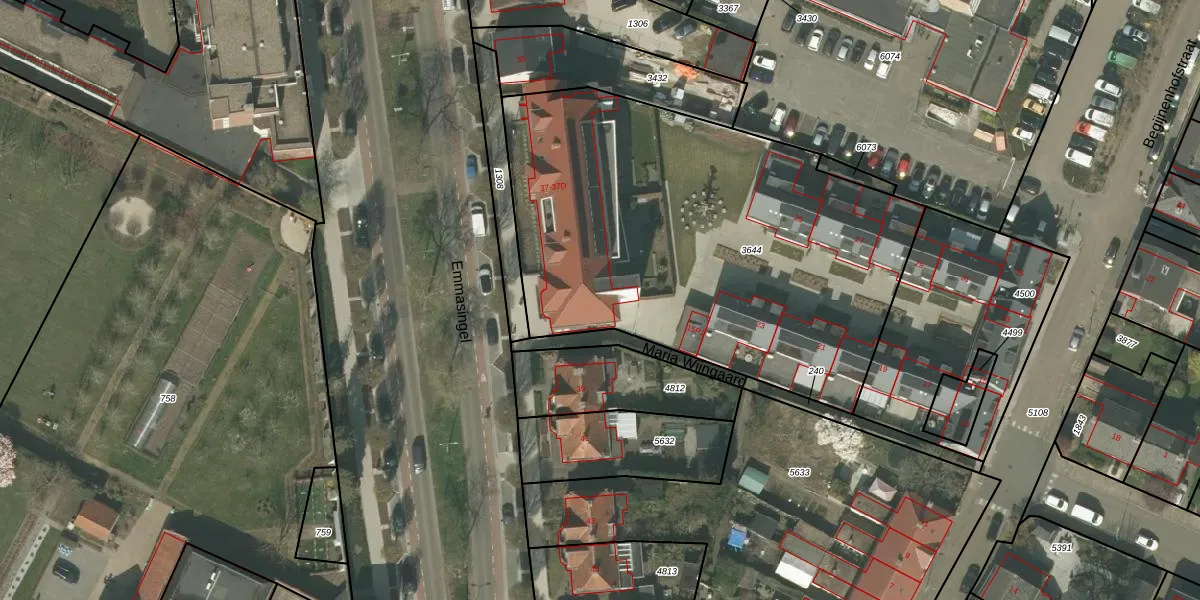 Het perceel waarop Emmasingel 37-D staat heeft een oppervlakte van 2505 m². Dit is een zeer groot perceel. De perceeloppervlakte wordt geregistreerd door het Kadaster. Gedetailleerde informatie over de maten van dit perceel kunt u vinden in het rapport Kadastrale kaart met maatvoering van Emmasingel 37-D.