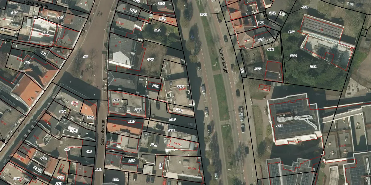 Het perceel waarop Emmasingel 8-F staat heeft een oppervlakte van 370 m². Dit is een groot perceel. De perceeloppervlakte wordt geregistreerd door het Kadaster. Gedetailleerde informatie over de maten van dit perceel kunt u vinden in het rapport Kadastrale kaart met maatvoering van Emmasingel 8-F.