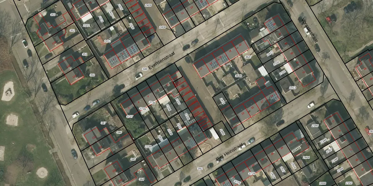 Het perceel waarop Evertsenstraat 10-V-4 staat heeft een oppervlakte van 2331 m². Dit is een zeer groot perceel. De perceeloppervlakte wordt geregistreerd door het Kadaster. Gedetailleerde informatie over de maten van dit perceel kunt u vinden in het rapport Kadastrale kaart met maatvoering van Evertsenstraat 10-V-4.