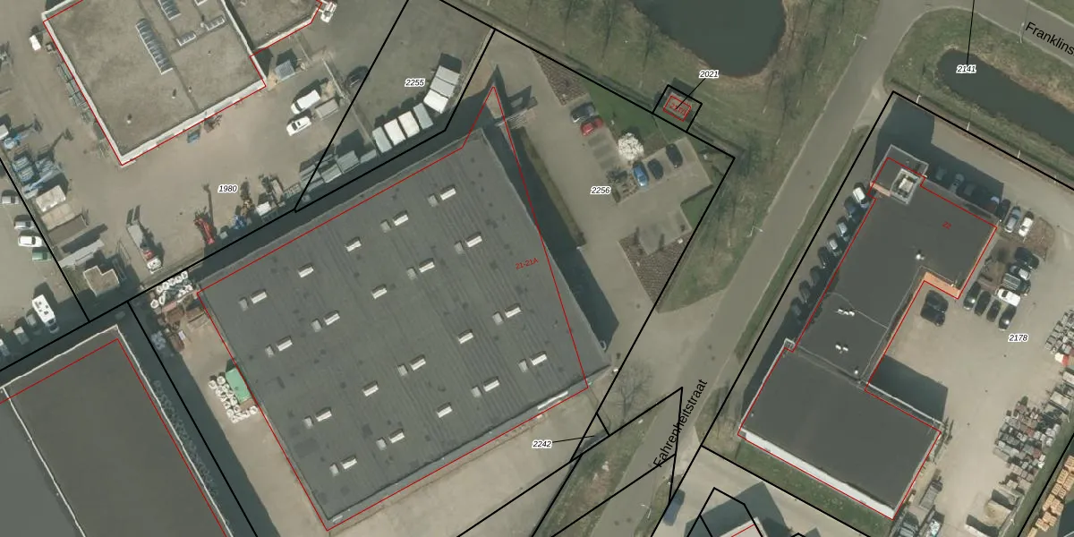 Het perceel waarop Fahrenheitstraat 21 staat heeft een oppervlakte van 6400 m². Dit is een zeer groot perceel. De perceeloppervlakte wordt geregistreerd door het Kadaster. Gedetailleerde informatie over de maten van dit perceel kunt u vinden in het rapport Kadastrale kaart met maatvoering van Fahrenheitstraat 21.