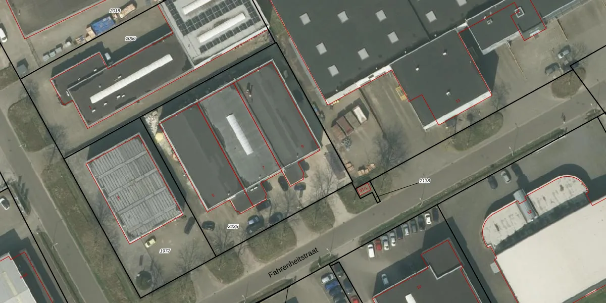 Het perceel waarop Fahrenheitstraat 9 staat heeft een oppervlakte van 2700 m². Dit is een zeer groot perceel. De perceeloppervlakte wordt geregistreerd door het Kadaster. Gedetailleerde informatie over de maten van dit perceel kunt u vinden in het rapport Kadastrale kaart met maatvoering van Fahrenheitstraat 9.