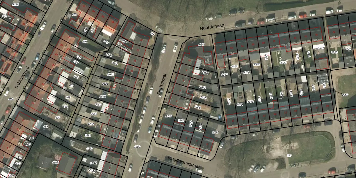 Het perceel waarop Florisstraat 4 staat heeft een oppervlakte van 200 m². Dit is een middelgroot perceel. De perceeloppervlakte wordt geregistreerd door het Kadaster. Gedetailleerde informatie over de maten van dit perceel kunt u vinden in het rapport Kadastrale kaart met maatvoering van Florisstraat 4.