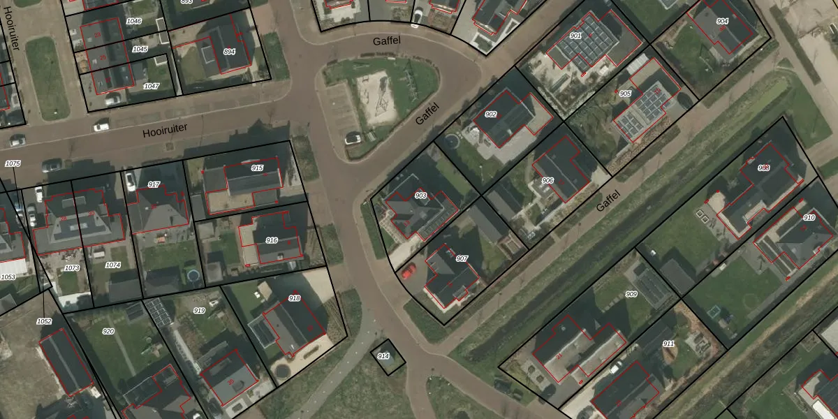 Het perceel waarop Gaffel 13 staat heeft een oppervlakte van 417 m². Dit is een groot perceel. De perceeloppervlakte wordt geregistreerd door het Kadaster. Gedetailleerde informatie over de maten van dit perceel kunt u vinden in het rapport Kadastrale kaart met maatvoering van Gaffel 13.