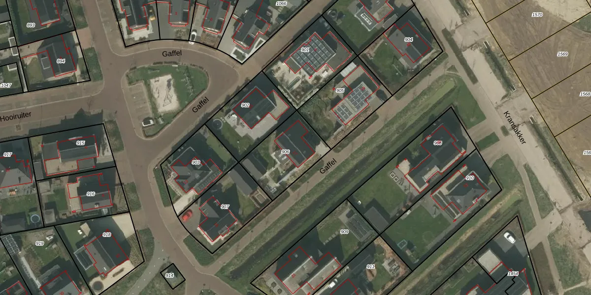 Het perceel waarop Gaffel 17 staat heeft een oppervlakte van 462 m². Dit is een groot perceel. De perceeloppervlakte wordt geregistreerd door het Kadaster. Gedetailleerde informatie over de maten van dit perceel kunt u vinden in het rapport Kadastrale kaart met maatvoering van Gaffel 17.