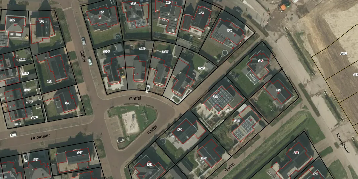 Het perceel waarop Gaffel 7 staat heeft een oppervlakte van 492 m². Dit is een groot perceel. De perceeloppervlakte wordt geregistreerd door het Kadaster. Gedetailleerde informatie over de maten van dit perceel kunt u vinden in het rapport Kadastrale kaart met maatvoering van Gaffel 7.