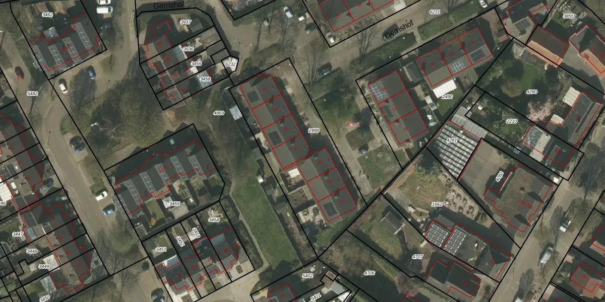 Gerrishof 27 is gelegen op kadastraal perceel WEE01N2488. Deze kadastrale aanduiding is uniek en wordt gebruikt door het Kadaster om eigendomsrechten en andere zakelijke rechten vast te leggen. Het perceel maakt onderdeel uit van de kadastrale gemeente Weert.