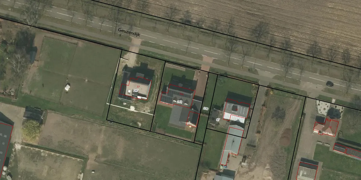 Gebruik de zoekbalk of klik op een perceel voor informatie over de adressen binnen dit perceel.