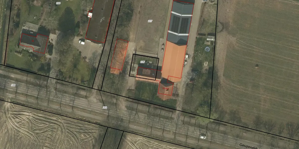 Geuzendijk 34-A is gelegen op kadastraal perceel WEE01Y226. Deze kadastrale aanduiding is uniek en wordt gebruikt door het Kadaster om eigendomsrechten en andere zakelijke rechten vast te leggen. Het perceel maakt onderdeel uit van de kadastrale gemeente Weert.