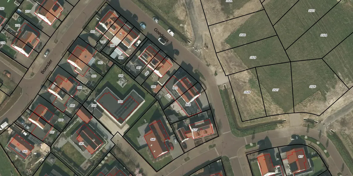 Gebruik de zoekbalk of klik op een perceel voor informatie over de adressen binnen dit perceel.