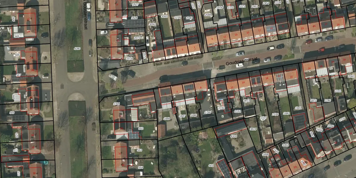 Gebruik de zoekbalk of klik op een perceel voor informatie over de adressen binnen dit perceel.
