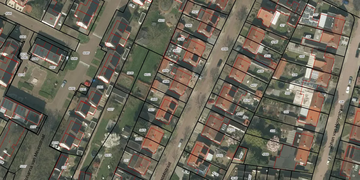 Gebruik de zoekbalk of klik op een perceel voor informatie over de adressen binnen dit perceel.