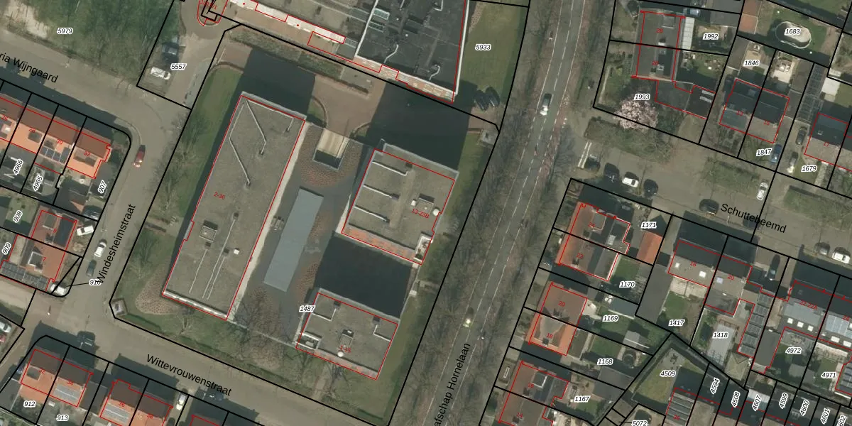 Het perceel waarop Graafschap Hornelaan 21 staat heeft een oppervlakte van 5290 m². Dit is een zeer groot perceel. De perceeloppervlakte wordt geregistreerd door het Kadaster. Gedetailleerde informatie over de maten van dit perceel kunt u vinden in het rapport Kadastrale kaart met maatvoering van Graafschap Hornelaan 21.