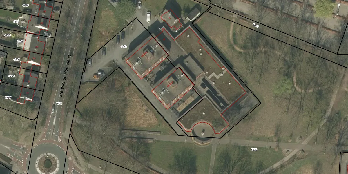 Graafschap Hornelaan 86-M is gelegen op kadastraal perceel WEE01S5642. Deze kadastrale aanduiding is uniek en wordt gebruikt door het Kadaster om eigendomsrechten en andere zakelijke rechten vast te leggen. Het perceel maakt onderdeel uit van de kadastrale gemeente Weert.